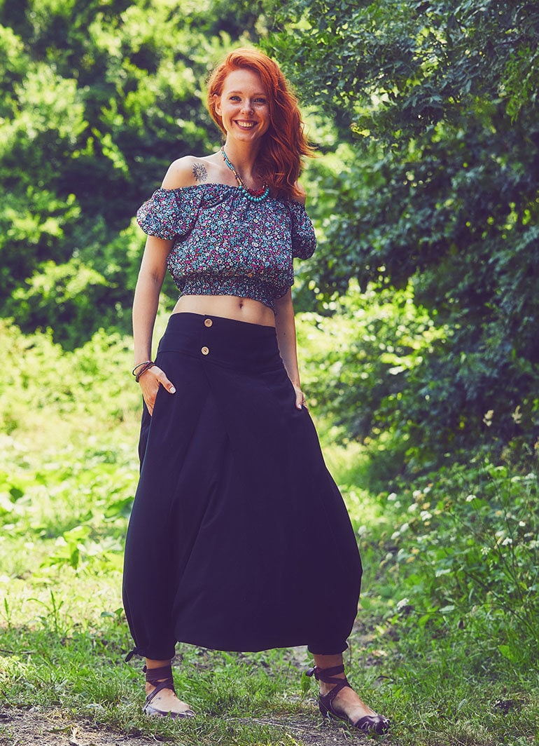 Be the first to review “Cotton Harem Pants With Pockets Button Accent Comfy”