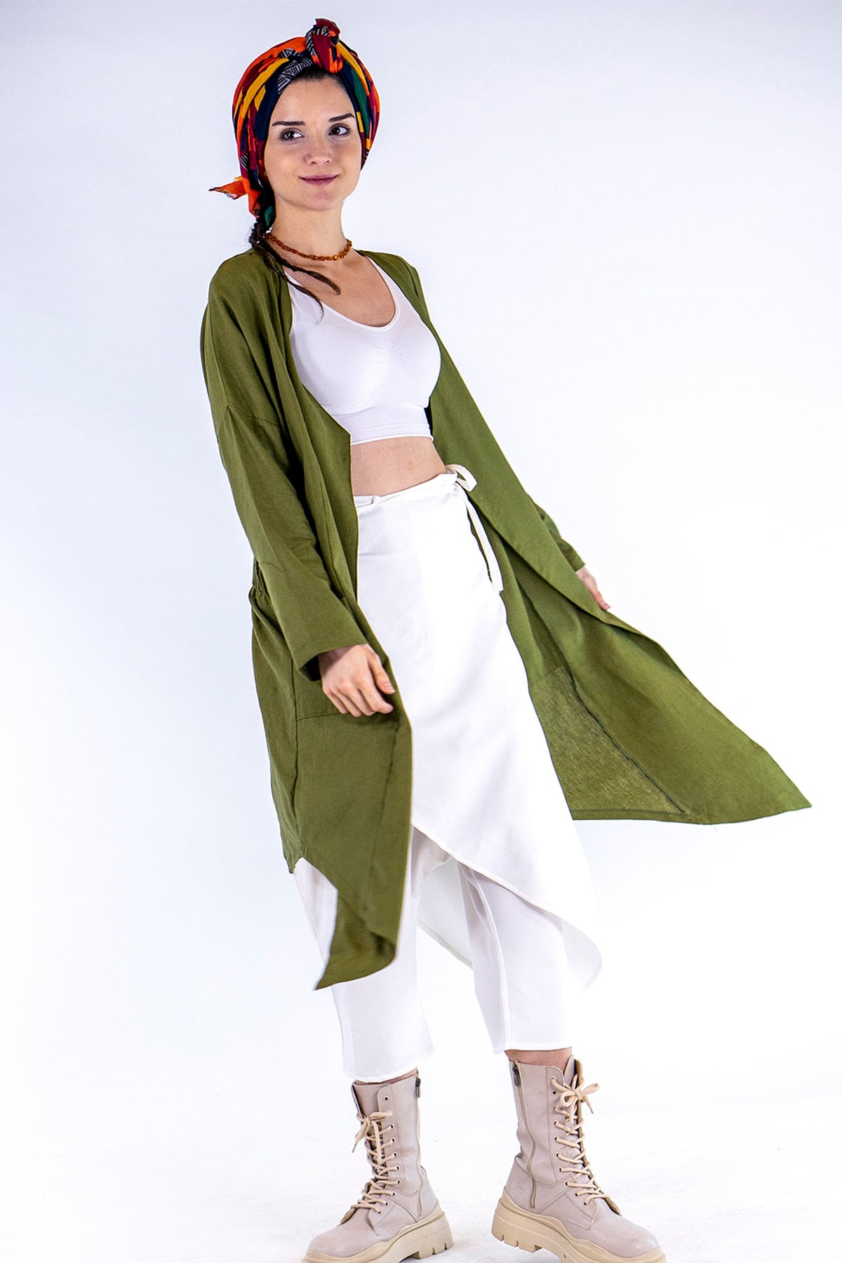 Emerald color kimono is one of our bestsellers. It can be combined with your jeans and our pants.