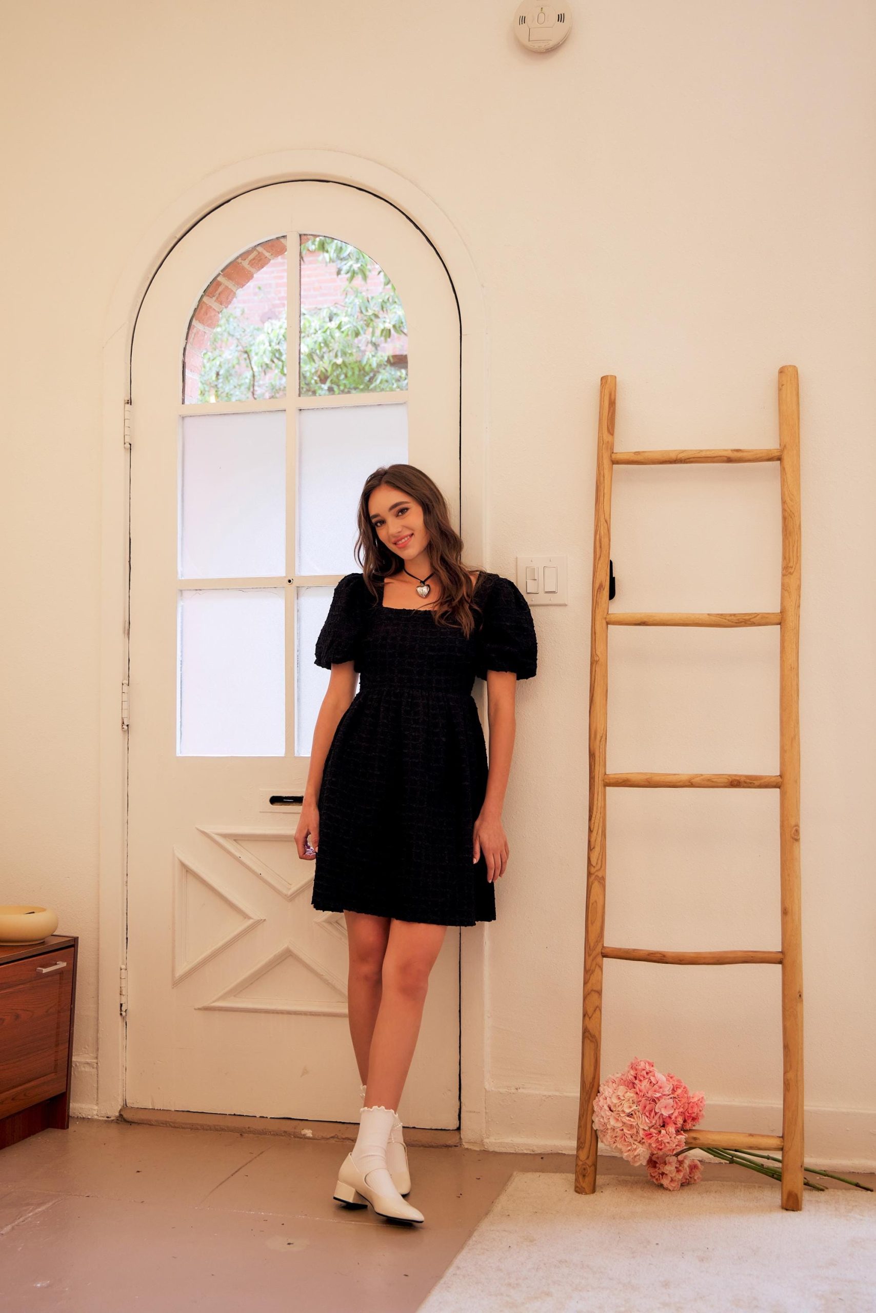 Step into elegance with this romantic and timeless mini dress, crafted in premium textured fabric. Designed with a flattering square neckline, charming bubble sleeves, and a comfortable smocked back, it brings together cuteness and class in the best way.
